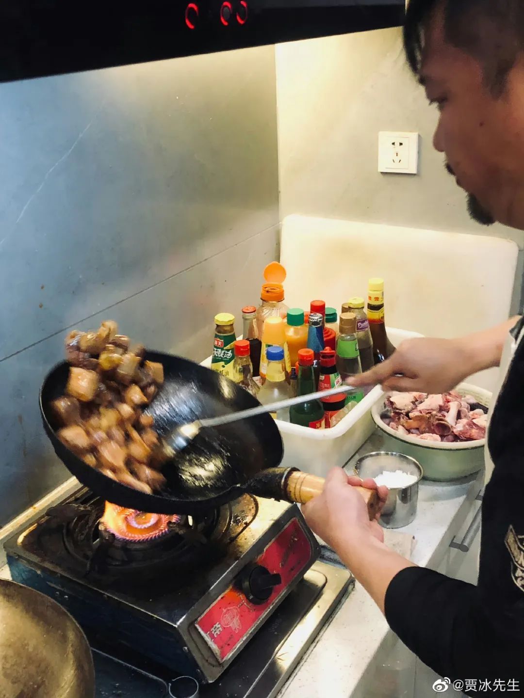 在众多明星不吃碳水的娱乐圈,贾冰掌勺,无人能逃出口腹之欲,铁锅炖出的菜甭提多香了。