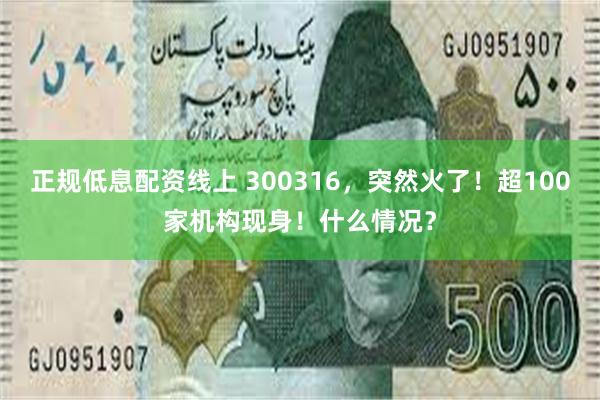 正规低息配资线上 300316,突然火了!超100家机构现身!什么情况?