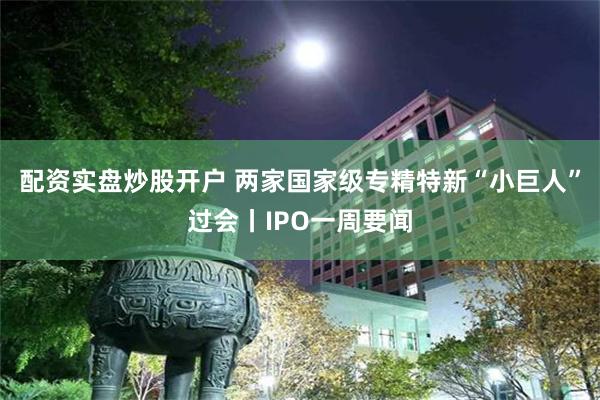 配资实盘炒股开户 两家国家级专精特新“小巨人”过会丨IPO一周要闻